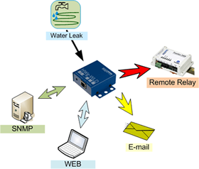 Remote output: When a water leak is detected, a remote relay is activated over the network (any Poseidon / Damocles)