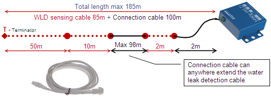 - Sensing cable can be 2 – 85 m (6.5 – 280 ft) long